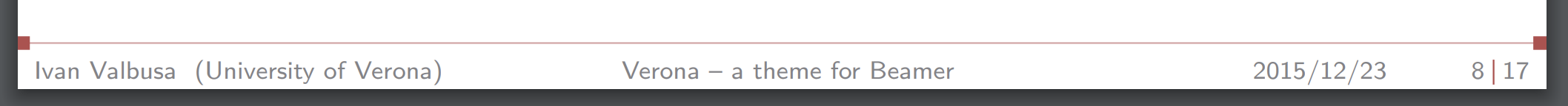这个问题和 R Markdown 都没关系,需要看下 Verona 主题的 LaTeX 源码,发现两个小矩形、横线是用 TikZ 绘制的,代码如下